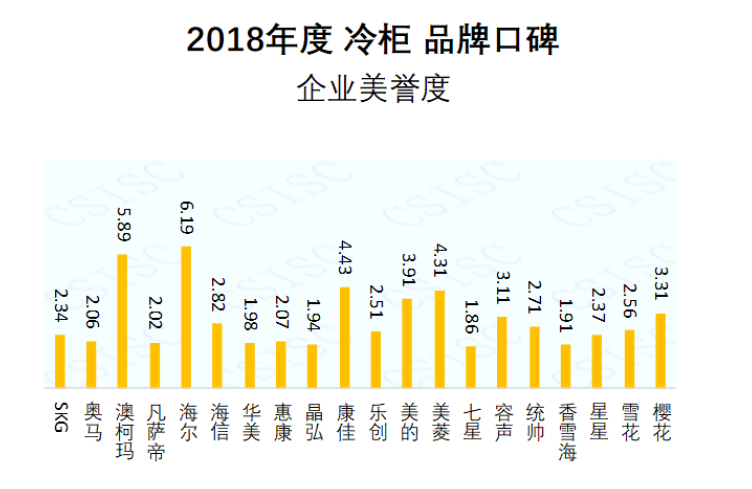 口碑總指數:澳柯瑪、海爾、星星在口碑總指數中位居前三。澳柯瑪、海爾、星星、美的、美菱、容聲、海信、櫻花在近兩期中表現穩定,口碑總指數位居前十。